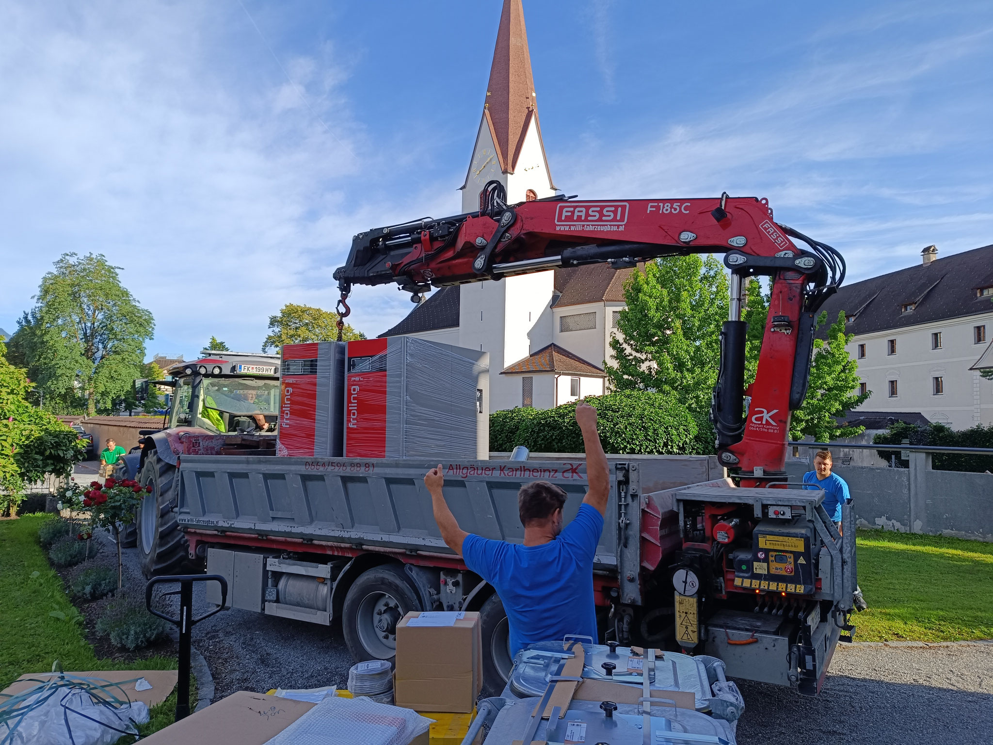 Im Rahmen der Renovierung und Umgestaltung unserer Pfarrkirche wird auf ein effizientes und umweltfreundliches Heizsystem umgestellt: Die bisherige Bankheizung in der Kirche und die Ölheizung im Pfarrhaus haben ausgedient. Die großen Kellerräume im Pfarrhaus bieten der neuen Heizungsanlage und dem Pelletslager genügend Platz. Schon jetzt wurde mit der Installation der neuen Anlage begonnen, um dann über eine Fernwärmeleitung vom Pfarrhaus aus die Kirche mitzuheizen. Die neue Anlage ermöglicht künftig eine effiziente, ressourcenschonende und klimafreundliche Wärmeversorgung beider Gebäude.