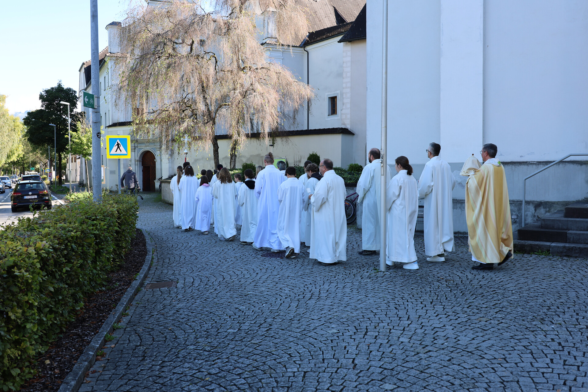 Am Sonntag, den 28. September 2025 war es so weit: Wir haben den letzten Gottesdienst in unserer Pfarrkirche gefeiert, bevor sie für die Renovierung und Umgestaltung geschlossen wurde. Und es war ein großer Gottesdienst: Mit unsrem Geistreich- und Kirchenchor, sowie jungen Projektsängerinnen und verschiedenen Musikern hat unser Chorleiter Andreas Madlener die Gospel-Messe „Body and Soul“ von Lorenz Maierhofer einstudiert und zum Besten gegeben. Der Kinderliturgiekreis gestaltete ebenso mit und die Kirche war bis auf den letzten Platz gefüllt. Die Predigt gibt es zum Nachlesen: >>> Hier klicken. Am Ende des feierlichen Gottesdienstes wurde das Allerheiligste, begleitet von allen Ministrant:innen in die Klosterkirche übertragen. Anschließend löschten Kinder die Kerzen in der Kirche aus... Ein besonderer Moment, der deutlich machte: Jetzt ist unsere Pfarrkirche freigegeben für die Renovierungs- und Umgestaltungsarbeiten! Nach dem Gottesdienst veranstalteten unsere Ortsvereine ein besonderes Fest bei der Volksschule: Unter dem Motto "zemmheba, fiera & healfa" präsentierten sich unsere Vereine und zeigten, wie viel Herz, Zusammenhalt und Engagement in unserem Dorf steckt. Das war für alle sichtbar und spürbar! Das Wetter spielte auch mit und es war uns ein wunderschöner sonniger Sonntag geschenkt. Natürlich war auch für Speis und Trank gesorgt. Viele folgten auch hier der Einladung und bald war der Festplatz gefüllt. Den Erlös spendieren die Vereine unserem Projekt "Zukunft Pfarrkirche Altenstadt". Hier gilt allen ein ganz großes DANKE!, die zum Gelingen des Gottesdienstes und des Festes beigetragen haben. DANKE an unsere Ortsvereine für ihren Einsatz und das Engagement für unser Projekt!