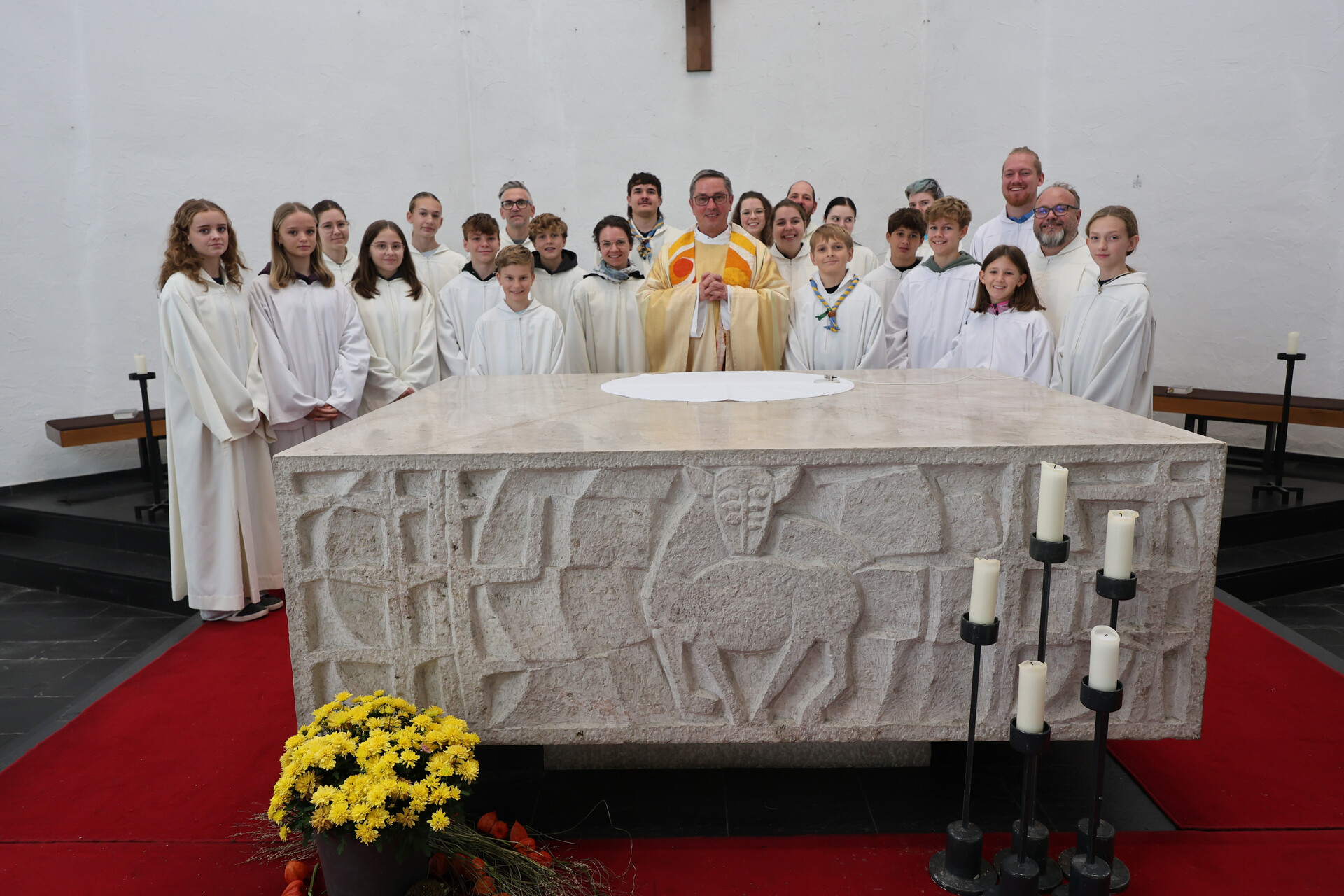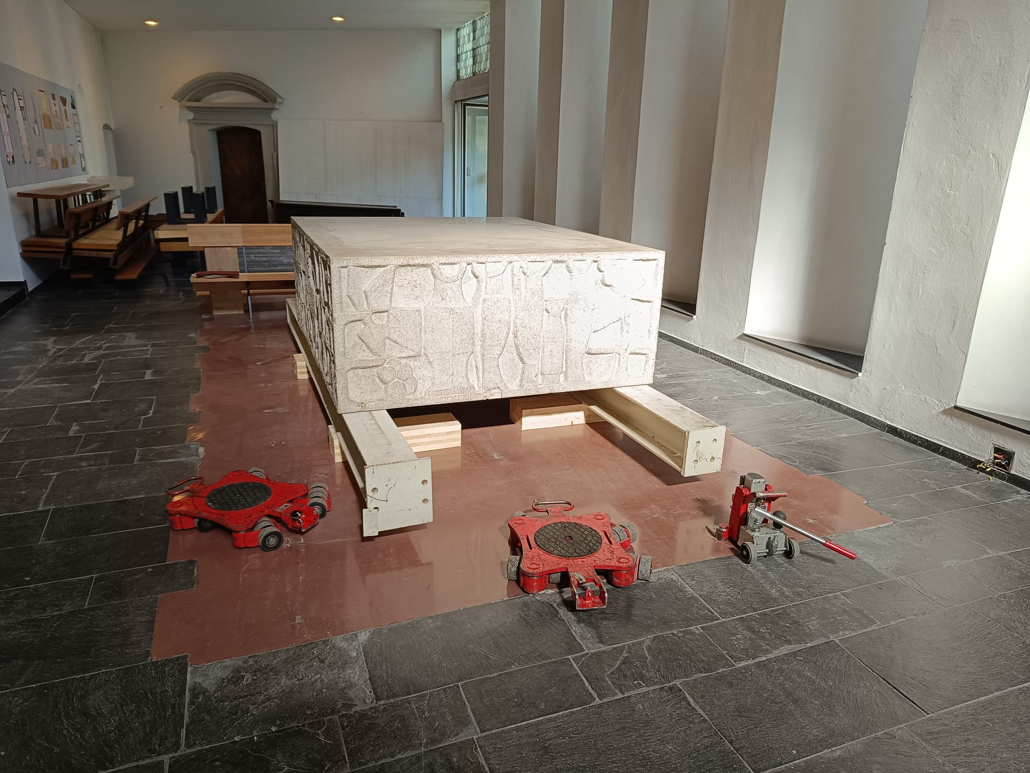 Die heurige Kilbi, unser Kirchweihfest war mit dem ersten Opfer zugunsten des Projekts "Zukunft Pfarrkirche Altenstadt" so etwas wie der Startschuss für die Umsetzung von unserem Projekt „Zukunft Pfarrkirche Altenstadt“. Genau am Kilbisonntag vor 60 Jahren, also am 8. September 1964, wurde unser jetziger Altar geweiht. Der Bildhauer Herbert Albrecht hat die Reliefs an unserem Altar geschaffen. Sie zeigen vorne weg das Lamm Gottes, seitlich die Hochzeit zu Kana und Christus, das lebendige Brot, hinten hin die wunderbare Brotvermehrung. Im Altar wurden bei der Weihe Reliquien der Heiligen Fidelis und Bischof Zeno beigesetzt. Unser Altar wird auch in der umgestalteten und renovierten Pfarrkirche die Mitte unserer Gemeinde sein, um den wir uns weiterhin zum Gottesdienst versammeln.